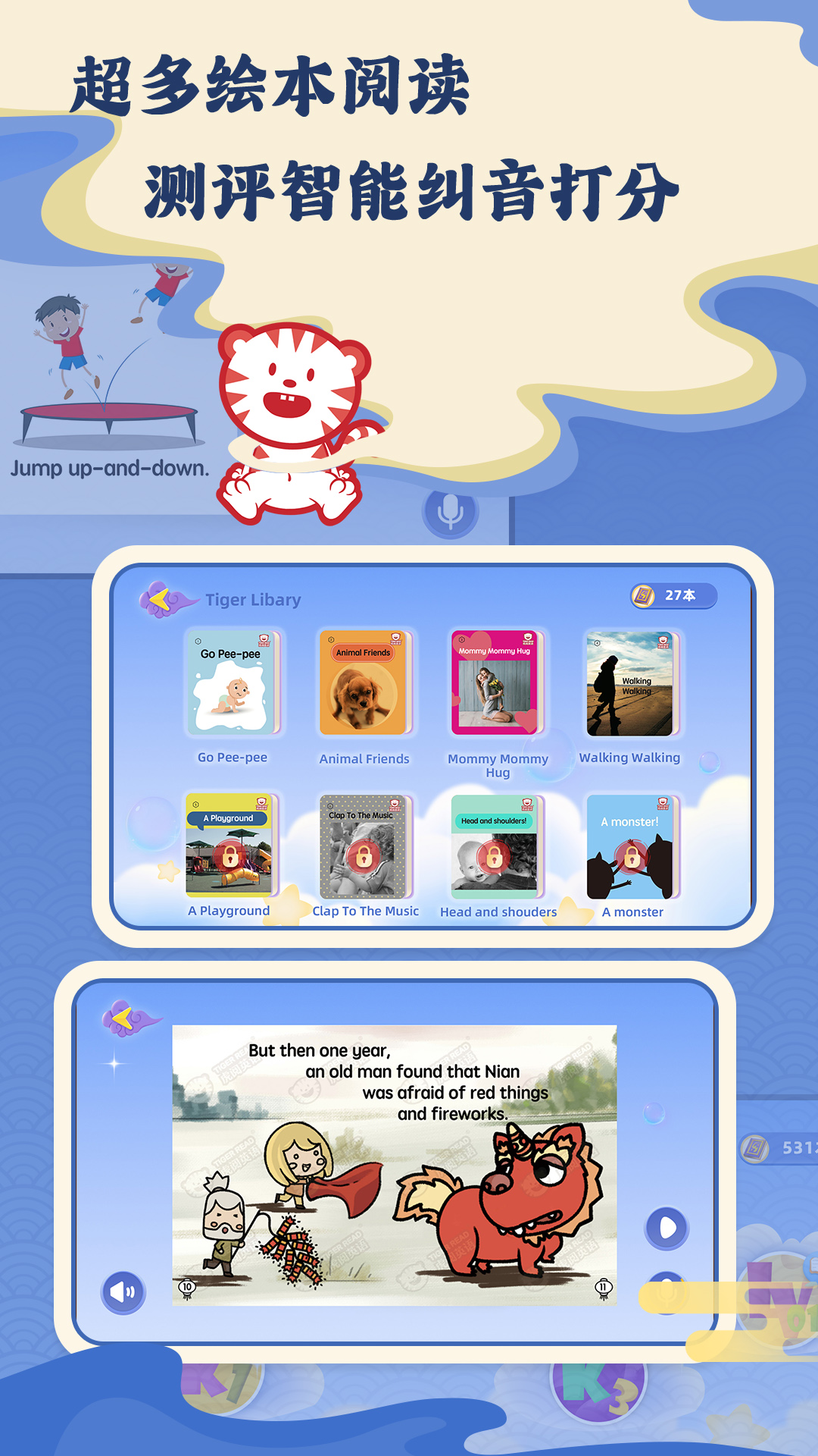 虎阅英语电脑版介绍:虎阅英语是一款以中国风为主题的互动式英语学习APP。它提供6个级别超过300本分级阅读内容,涵盖传统经典到现代生活,从民间故事到日常细节,并通过多样化的绘画风格展现新国风。