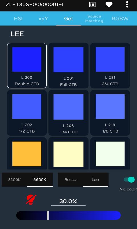 软件主要功或者WiFi连接到灯具,拍摄人员可以根据使用场景实时调整灯具的颜色,效果。