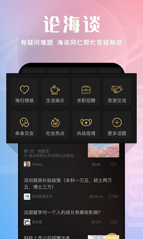•附近Nearby:发现身边海归,寻找与你志同道合的人,偶遇新鲜事物。