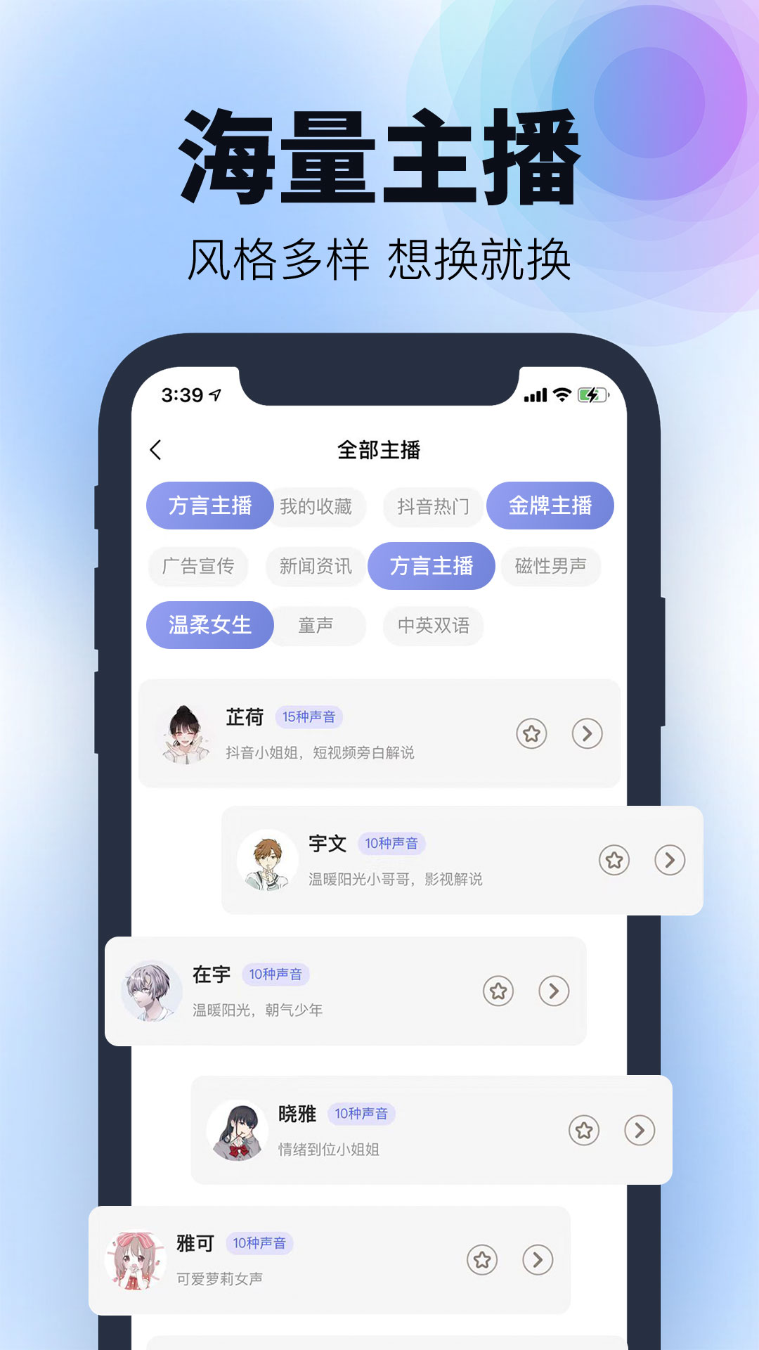 1、海量主播:近300款优质声音,风格多样,想换就换,效果震撼;