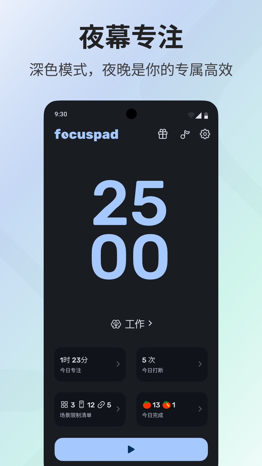 *个性化场景,随心所欲:根据你的不同需求,轻松定制专属专注模式,无论是紧张工作、高效学习还是休闲放松,都能找到最适合你的高效状态。