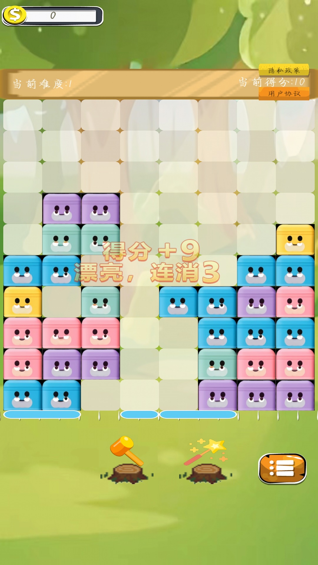 画面卡通风格,颜色明亮,视觉效果佳。用户需要水平移动方块,填满整行以消除得分,操作简单易懂,同时又能锻炼思维。