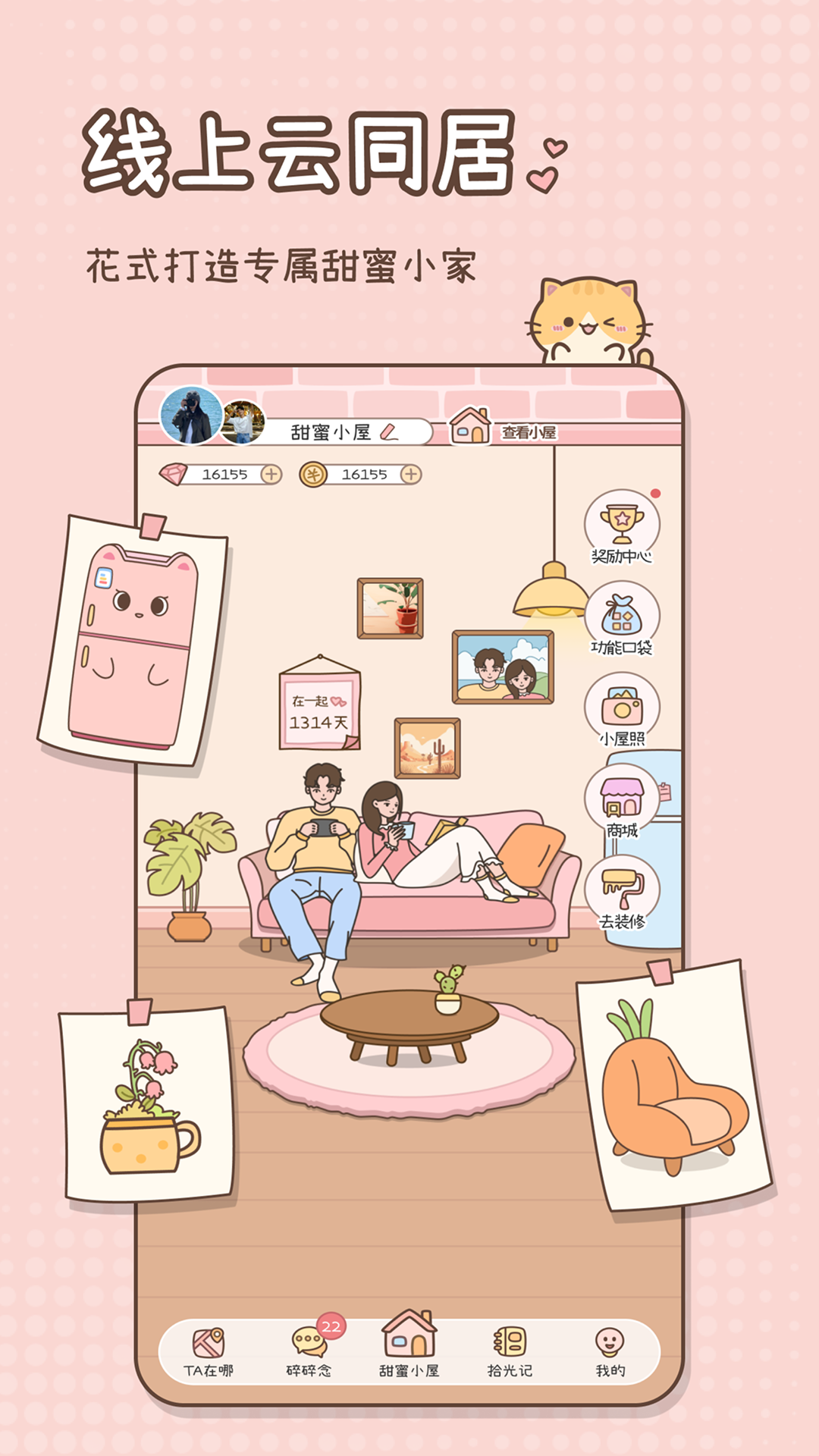 【甜蜜小屋】打造属于情侣的温馨浪漫云小屋,还可以一起装扮情侣空间。