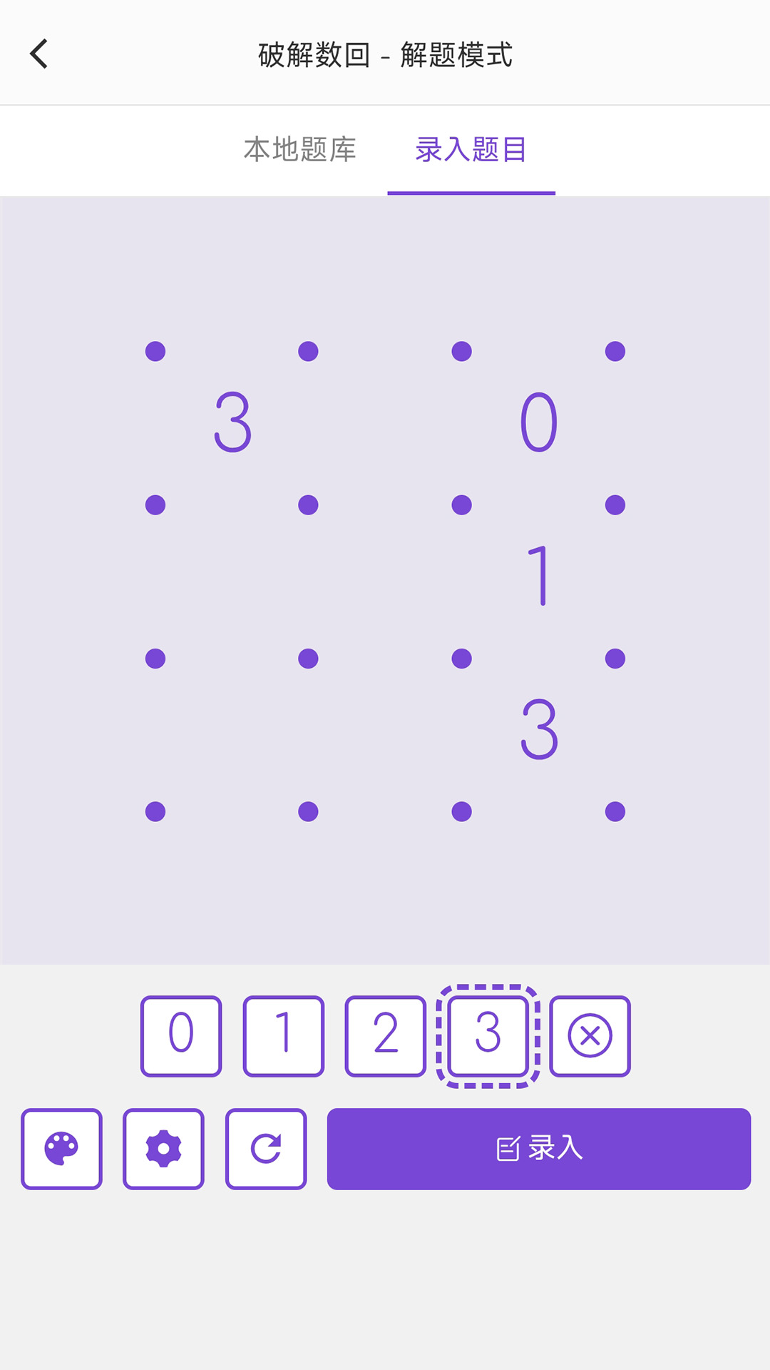 破解数回电脑版介绍:数回解题器是一款支持2至10阶数回题目求解的应用程序,提供丰富的在线题库。数回游戏规则基于0、1、2、3四个数字,每个数字表示其周围可划线的数量。玩家需通过直线连接点,最终形成一个不间断、无分岔的闭合回路,而无数字处则对划线数量无限制。