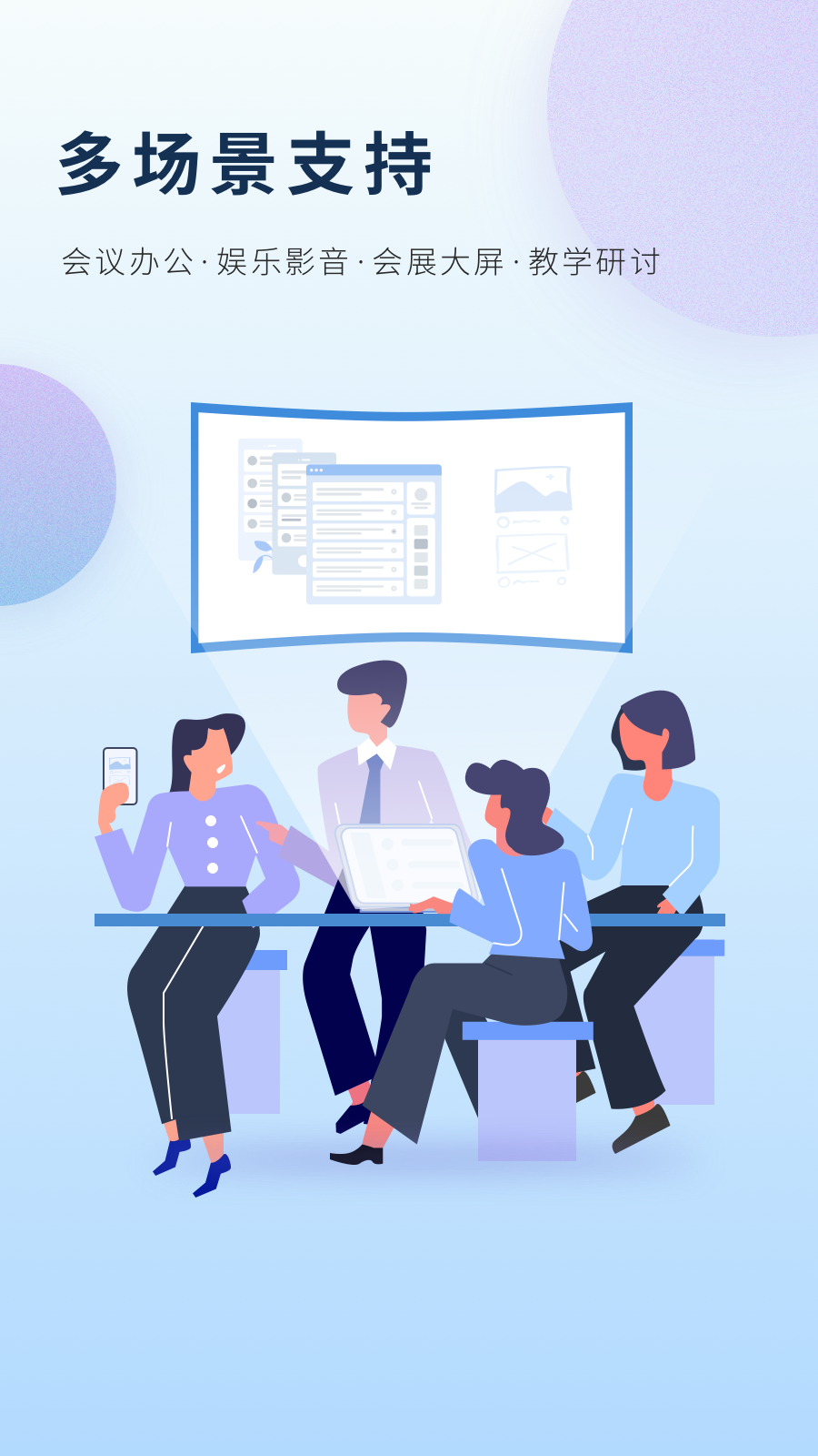手机投影电视解决方案,不受硬件和操作系统版本限制,无需额外配置,输入投屏码即可投屏;会议无线投屏,轻松连接,办公演示更高效;投屏码高效准确,高清镜像,低延迟;即安即用,轻松云端管理;支持内网部署,解决企业安全隐患。支持商业场景使用,例如会议,教务,内宣,商展,广告;可以集中管控,一键查询职场终端在线情况,屏显内容可分组配置。Win/Mac客户端可从官网下载 https://www.wisecast.net/