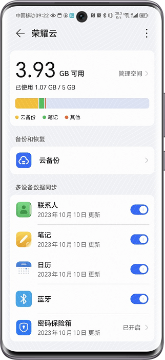 云备份功能支持的机型:2023年11月23日及之后上市的荣耀设备