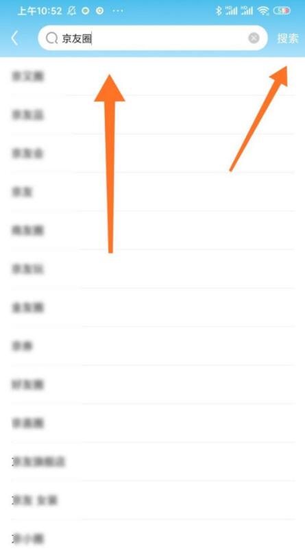 2、来到下个页面,我们直接输入京友圈,点击搜索;