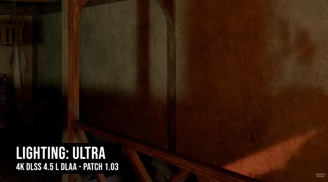 本次补丁小幅优化了游戏光照效果,在光影表现不稳定的室内场景中,改善效果尤为突出。但核心问题尚未彻底解决,开启光线追踪依旧会出现画面噪点。借助光线重构功能虽能缓解该问题,却会造成严重的帧率下降。