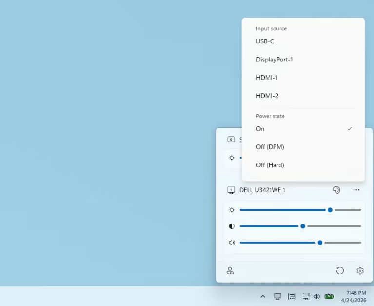 Power Display 功能:支持从系统托盘直接操控显示器设置
