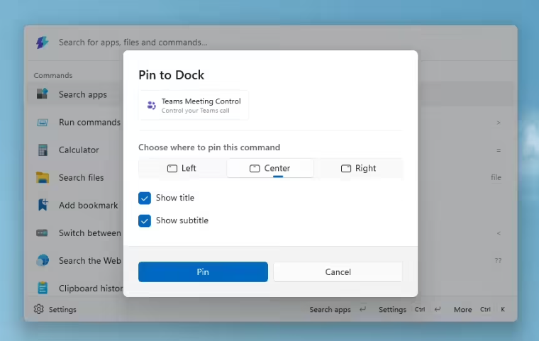 此外,用户可通过新增设置窗口自定义固定命令,既能调整其在 Dock 中的显示位置,也能自主选择是否展示标题与副标题。